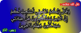 ![]() لو رأيت طفلاً صغيراً يجرى نحوك ثم يحتمى بك ويقول لك بكل لهفة إلحقنى. هتعمل إيه؟ أكيد الفِطرة التى بداخلك من حُب الخير هى من ستجعلك تحمى هذا الطفل مما يخاف حتى لو لم تكن تعرفه مسبقاً. ولو كان الطفل ده مثلاً صبى القهوة اللى جنب بيتكم وفيه زبون بيضربه مستغل أن المعلم مش موجود هتعمل إيه؟. أكيد هتحوش عنه مش لأنه جارك وسِنه صغير وبس لأ ده لأنه كمان بيستنجد بيك. ولو عرفت بقى أن ابنك مثلاً رجال كثير ناويين يخطفوه وهم طبيعى عددهم مهما كان أكتر منك الطبيعى برضه أن أنت مش هتنتظر ان ابنك يناديك عشان تلحقه بل ستبذل اقصى ما عندك حتى لو هتموت فيها. مش كده برضه ولا إيه؟. ![]() ![]() ![]() وكلام ربنا خير دليل: - أنَّ الله تعالى وعد بإجابة الدعاء فقال: {وَإِذَا سَأَلَكَ عِبَادِي عَنّي فَإِنّي قَرِيبٌ أُجِيبُ دَعْوَةَ ٱلدَّاعِ إِذَا دَعَانِ} [البقرة: 186]، وقال: {أَمَّن يُجِيبُ ٱلْمُضْطَرَّ إِذَا دَعَاهُ وَيَكْشِفُ ٱلسُّوء} [النمل: 62]، وقال: {ٱدْعُونِى أَسْتَجِبْ لَكُمْ} [غافر:60]. ![]() ![]() من آداب الدعاء: ــــــــــــــــــــــــــــــ ــــــ *الإخلاص لله جل وعلا . * وأن تبدأ بحمد الله والثناء عليه ثم بالصلاة على النبي عليه الصلاة والسلام وتختم بذلك . * أن تكون جازماً في الدعاء وأن تكون موقناً بالإجابة . * أن تكون ملحاحاً في دعائك ولا تستعجل الإجابة . * أن تكون حاضر القلب في دعائك فإن الله لا يقبل الدعاء من قلب لاهٍ . *الدعاء في الرخاء والشدة .اعرف الله فى الرخاء يعرفك فى الشدة. * لا يسأل إلا الله وحده . * عدم الدعاء على الأهل ، والمال ، والولد ، والنفس . * أن تخفض صوتك بالدعاء بين المخافتة والجهر . * الاعتراف بالذنب ، والاستغفار منه ، والاعتراف بالنعمة ، وشكر الله عليها . * عدم تكلف السجع في الدعاء. * أن تخشع في دعائك وتستحضر عظمة الله ورحمته .. * كثرة الأعمال الصالحة ، فإنها سبب عظيم في إجابة الدعاء. * رد المظالم مع التوبة . * الدعاء ثلاثاً. * استقبال القبلة . *رفع الأيدي في الدعاء . * الوضوء قبل الدعاء إذا تيسر . * أن يبدأ الداعي بنفسه إذا دعا لغيره . *أن يتوسل إلى الله بأسمائه الحسنى وصفاته العلى ، أو بعمل صالح قام به الداعي نفسه ، أو بدعاء رجل صالح له . *التقرب إلى الله بكثرة النوافل بعد الفرائض ، وهذا من أعظم أسباب إجابة الدعاء . *أن يكون المطعم والمشرب والملبس من حلال . * لا يدعو بإثم أو قطيعة رحم . *أن يدعو لإخوانه المؤمنين ، ويحسن به أن يخص الوالدان والعلماء والصالحون والعباد بالدعاء ، وأن يخص بالدعاء من في صلاحهم صلاح للمسلمين كأولياء الأمور وغيرهم ، ويدعو للمستضعفين والمظلومين من المسلمين . * أن يسأل الله كل صغيرة وكبيرة . * أن يأمر بالمعروف وينهى عن المنكر . * الابتعاد عن جميع المعاصي . * أن تستقبل القبلة وأن تكون على طهارة . * أن تكون طيب المطعم والملبس والمشرب ، فإن الله طيب لا يقبل إلا طيباً .. * أن تتحرى أوقات الإجابة لا سيما عشية يوم عرفة ، وبين الأذان والإقامة, ويوم الجمعة فهناك ساعة إجابة, والثلث الأخير من الليل ، وأثناء الصيام "فللصائم عند فطره دعوة لاترد", ودعاء المسافر أيضاً مجاب ودعاء الوالد لولده, ودعاء المظلوم ليس بينه وبين الله حجاب , وكذلك الأوقات الفاضلة مثل الطواف والسعي . وعند شرب زمزم مع النية الصادقة . -منقول من مصادر متعددة- . ![]() أخطاء تقع فى الدعاء: ــــــــــــــــــــــــــــــ ــــــــــــ *يشتمل الدعاء على شئ من التوسلات الشركية أو البدعية . * تمني الموت وسؤال الله ذلك . * الدعاء بتعجل العقوبة . * الدعاء بما هو مستحيل أو بما هو ممتنع عقلاً أو عادة أو شرعاً. * الدعاء بأمر قد تم وحصل بالفعل وفُرغ منه . * أن يدعوا بشئ دلّ الشرع على عدم وقوعه . *الدعاء على الأهل والأموال والنفس . * الدعاء بالإثم كأن يدعو على شخص أن يبتلى بشئ من المعاصي . * الدعاء بقطيعة رحم . * الدعاء بانتشار المعاصي . * تحجير الرحمة ، كأن يقول : اللهم اشفني وحدي فقط وارزقني وحدي فقط . *أن يخص الإمام نفسه بالدعاء دون المأمومين إذا كانوا يؤمنون وراءه . * ترك
