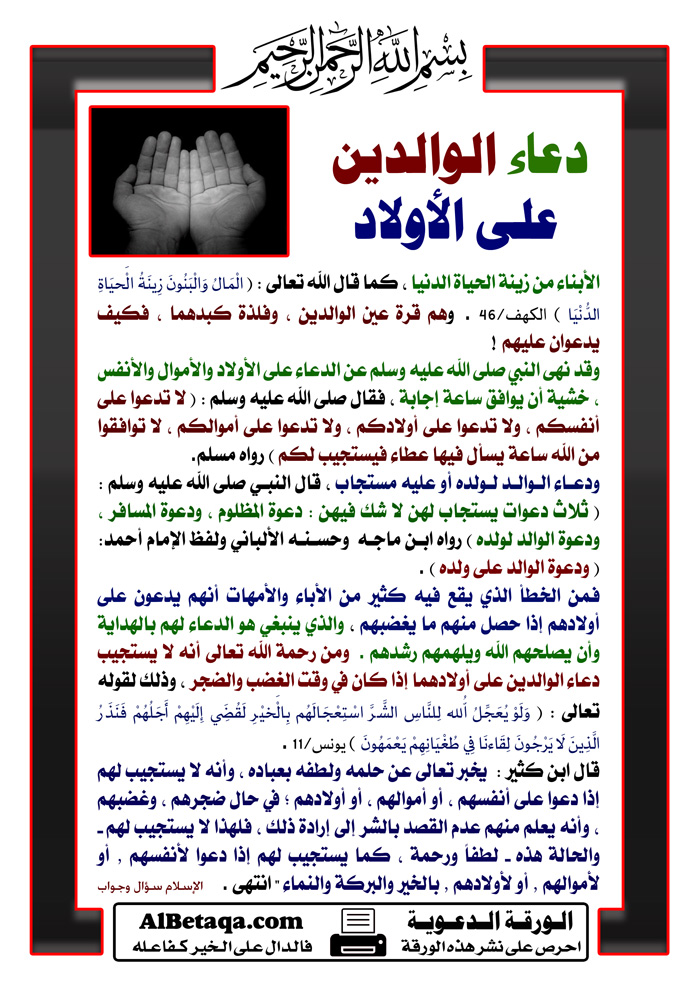 دعاء الوالدين على الأولاد يوجد هنا دعاء الوالدين على الأولاد منتدى اسلامي, قران, خطب الجمعة, اذكار,