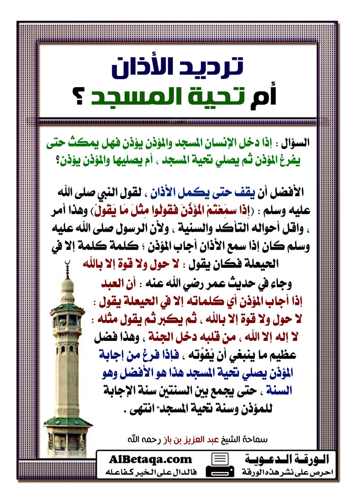 ترديد الأذان أم تحية المسجد ؟ يوجد هنا ترديد الأذان أم تحية المسجد ؟ منتدى اسلامي, قران, خطب الجمعة, اذكار,