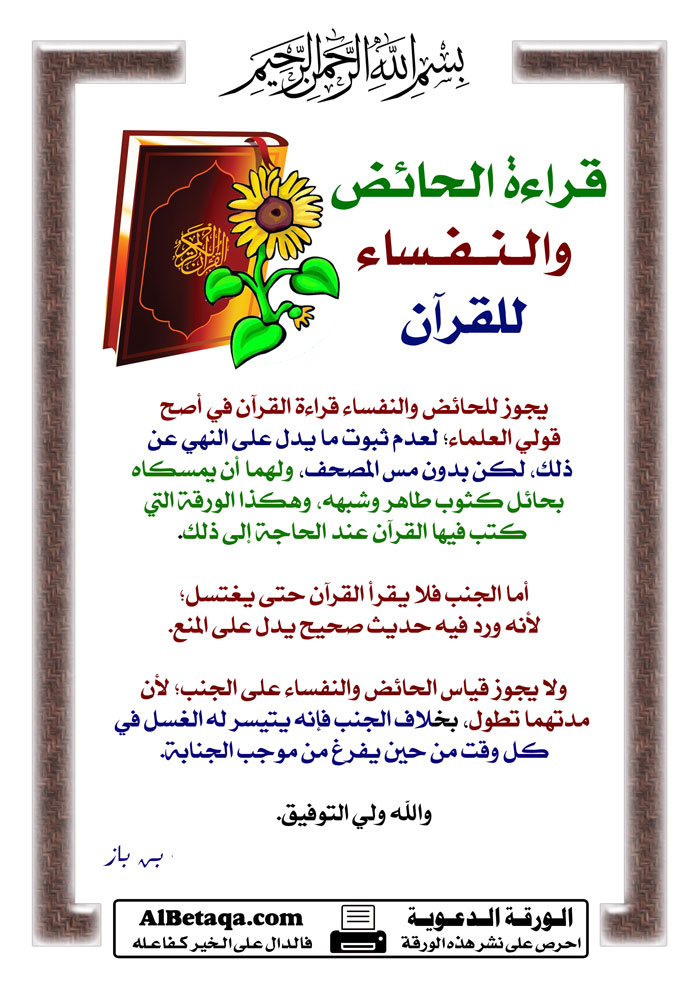 مواضيع ذات صلةشهر الصيام وقراءة القرانوسائل تنمية الثقافة الدينية للأبناءأنت جميلة؟!! لكن يا أيتها الجميلة: من أي الجميلات أنت؟!!إرشادات لتهيئة الأبناء للعودة إلى المدرسةالإعجاز العلمي في تحريم صلاة المرأة الحائضأرجو قراءة هذا المقال إلى آخر سطر فيهقراءة طفللماذا لا تصلى الحائض؟؟ فعلا سبحان اللهفضل قراءة الفاتحة بتمهلفضل قراءة سورة الكهف يوم الجمعةالصلوات التي يجب على الحائض والنفساء قضاؤها..... مهم جدا..فتاوى خاصة بصيام الحائض والنفساء