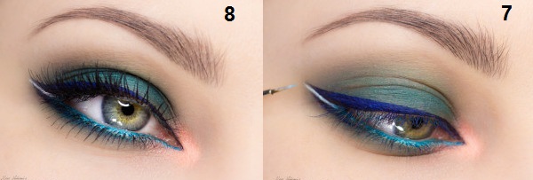 باستخدام محدد العيون باللون اللبني أو التريكواز قومي بتحديد الخط السفلي للرموش.