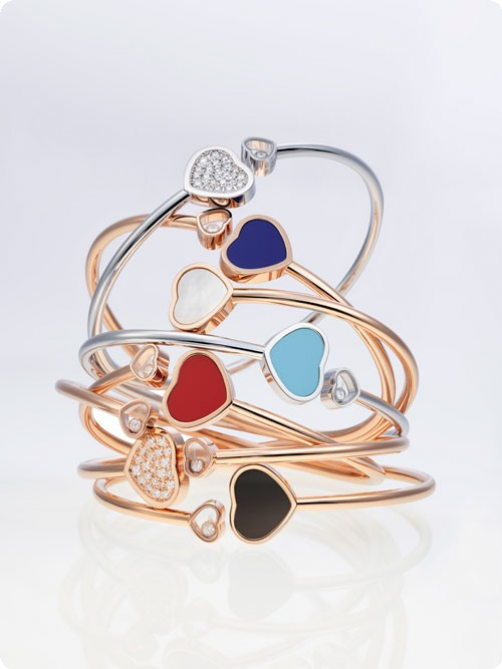تقدم شوبارد هذا العام رؤية جديدة تماماً لمجموعة Happy Hearts؛ حيث برزت فيها ألوان رائعة على القلوب المرصّعة بأحجار الفيروز أو العقيق أو اللؤلؤ أو اللازورد أو الألماس، جنباً إلى جنب مع القلوب التقليدية بتصاميمها المفتوحة والمخرّمة.