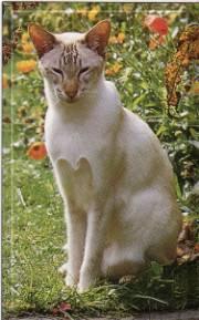 الأصول الشرقية السيامية واضحة بشكل رائع في رأسها ذو الشكل المرصوص وساقين أنيقتين وجسم لدن وذيل طويل.الساقان الأنيقتان طويلتان مع مخالب رقيقة، وفروتها الناعمة والقصيرة تُظهر ألوانها الجميلة كما في هذه القطة الزرقاء الجميلة.
