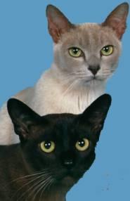 النوع البورمي Burmeseمنحدر من أصل أجنبي، أنثى بنية مستوردة إلى أميركا من بورما في الثلاثينيات وتزاوجت مع قط سيامي في غياب الزوج المناسب وتظهر هنا قطة بورمية تقليدية بنية وأحد الألوان الجديدة التي أصبحت أكثر شيوعاً. والبلاتينيوم (Platinum) تدعى أحياناً Lilac، ولونها الفضي الوردي الجميل مؤكد بفروتها القصيرة والسميكة وهذا اللون مع لون الشوكولا تم تناسله أولاً في الولايات المتحدة في أواخر الستينات إلى السبعينات ومن الصعب تميزه حتى يصبح عمر القطة عدة أسابيع.