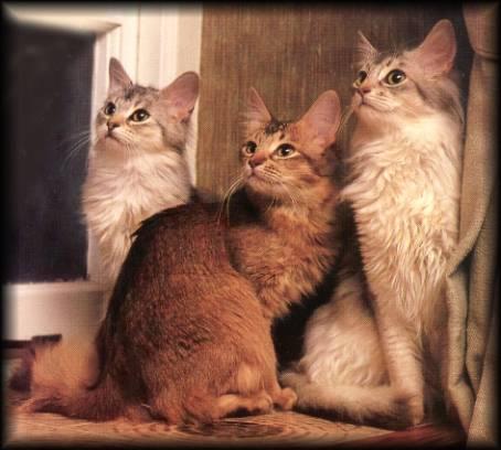 القط الصومالي نسخة طويلة الشعر من الإثيوبي الغريب. وبالرغم من أن سلالته ليست طويلة ومميزة إلا أنه جذاب و يظهركل الصفات الفيزيائية الأساسية والشخصية المسلية. كلا النوعان الصومالي والحبشي(الإثيوبي) حيويان ولهما بريقهما وسريعان بتعلم حيلة أو حيلتين و كلاهما مرافقان ممتازان وليسا مناسبين لشقة صغيرة بدون حديقة. بالرغم من التأثير الرائع للنوع الصومالي ذو اللون الكلاسيكي في فروة حريرية طويلة إلا أنه يأخذ بعض الوقت حتى يميز كسلالة. وبالرغم من أنه متطور منذ زمن بعيد في الثلاثينات إلا أنه لم يقبل رسمياً حتى السبعينات. والفرو الفاخر للنوع الصومالي يعطيه شكلاً وحشياً ولكن سمته أنه متحضر تماماً ، والنوع الصومالي Usual المصور هنا في الوسط لونه بني متورد ومميز بلون بني غامق أو أسود، لكن توجد تنوعات لونية أخرى وتضمن ,SorrelRed بالإضافة إلى الأزرق الفضي