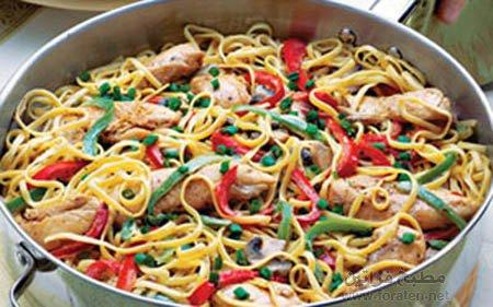معكرونة بالدجاج والسبانخ