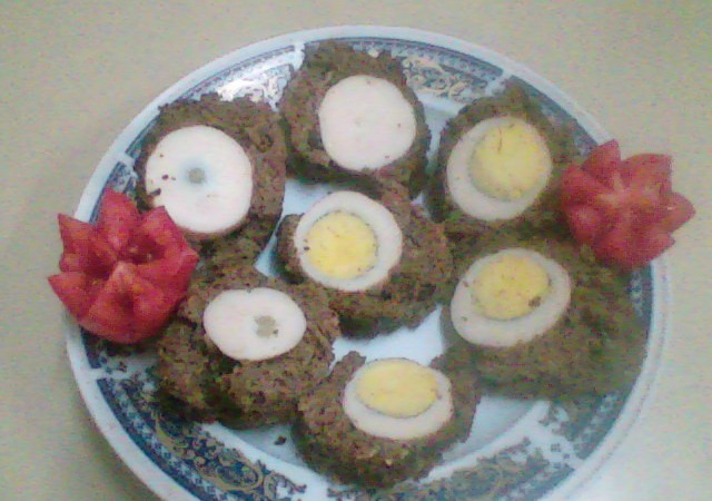 1- لحمه مفرومه 2- بيض زى ما تحبى ويكون مسلوق سلقه كامله طبعا 3- بهارات وبصل مفروم طبعا وممكن تحطى بقدونس عادى يرضه بس انا ما حطيتش الطريقه انا اول حاجه جيبت اللحمه المفرومه اهه وفرمت عليها بصلتين ناعم جدا وحطيت البهارات وقلبتها كويس http://up.azyya.com/do.php?imgf=1386497803331.jpg وبعدين جيبت ورق المونيوم ودهنته سمنه وفردت عليه اللحمه اهه http://up.azyya.com/do.php?imgf=1386497803622.jpg وبعدين جيبت البيض وحطيته فى نص اللحمه بعد ما ظبطتها كويس ع الورق الالمونيوم عشان يطلع شكلها مساوى وظريف فى الاخر http://up.azyya.com/do.php?imgf=1386497803784.jpg وهنا ابتديت الفها رول على شكل فيونكه معلشوا اصل انا قديمه حبتين ههههههه اهه http://up.azyya.com/do.php?imgf=1386497803845.jpg وبعدين حطيتها ع البوتاجاز من فوق تاخد غلوتين وبعدين دخلتها الفرن حوالى ساعه وكل شويه كنت ببص عليها عشان لو عازت ميه ازودها عشان متتحرقش من تحت http://up.azyya.com/do.php?imgf=1387323997771.jpg والحمد لله استوت وخرجتها وده شكلها بعد ما استوت اهه دى وهى لسه سخنه ودى بعد ما فكيتها وبردت عشان اعرف اقطعها من غير ما تتكسر منى http://up.azyya.com/do.php?imgf=1386499916991.jpg ودى بعد ما قطعتها وهى الان فى شكلها النهائى ههههههههه يارب تعجلكم يا بنات http://up.azyya.com/do.php?imgf=1386499917052.jpg ياريت الوصفه تعجبكم من مطبخ ماما يابنات وتنفيذى الموضوع حصرى لمنتدى ازياء فقط |