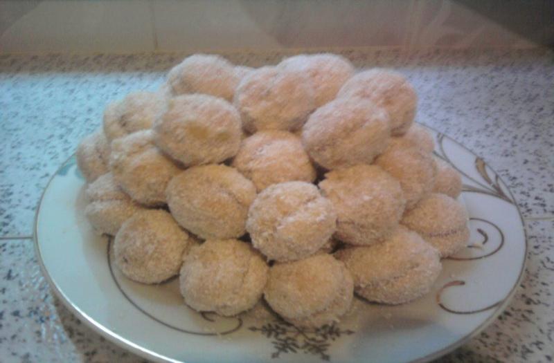 هذه الحلوى منين وعين على حالي و أنا كنشوف ماما كتعملهانة ولذيذة بزاف اتمنى تعجبكم مقاديره ساهلة جداً المقادير 3بيضات كوب سكر كوب زيت ملعقة صغيرة خميرة حلوى فاني ممكن وضع برش ليمون رشة ملح دقيق حسب العجينة لتزييين مربى مشمش جوز الهند ماء الزهر الطريقة في وعاء نضع البيض ثم السكر و الملح ثم يضاف الزيت مع الخلط باليد جيدا يضاف الفاني (و اذا حبين برش الليمون او ماء الزهر ) ينخل الدقيق و الخميرة ويضاف الى الخليط مع الخلط جيداالى ان تتكون عجين يمكن تكويرها ناخد كور صغيرة( يمكن استعمال الملعقة الصغيرة الخاصة بقياس الحلوى تعطيني نفس الحجم ) توضع في صنية مدهونة بزيت او على ورق خبز تدخل فرن درجته 180 حتى تنضج وتحمر قليلا في وعاء على النار نضعا المربى و القليل من الماء و ماء الورد يسخن ليصبح شيئاما سائل ناخد حبة نضعها في المربى تلصق مع حبة اخرى وتوضع في جوز الهند حتى تتغطى جيدا توضع في ورق الحلوى و تقدم بالصحة و الراحة (يمكن وضع الشكلاط الاسود مداب مع القليل من الزبدة عوض المربى وتمرمد أيضاً في جوز الهند او حسب ما هو موجود عندك بالبيت من مكسرات مجروشة ) و بالصحة والراحة وشكرا |