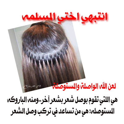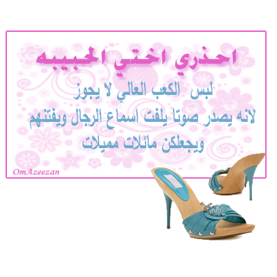 أحذري يامسلمه هذه المظاهر  صور  € https://up.azyya.com/do.php?imgf=1366355745731.gif حكم لبس الكعب العالي سؤال : ما حكم لبس الكعب العالي ، وما حكم وضع المناكير ؟ الجواب : لبس الكعب العالي محرم ؛ لأنه من التبرج الذي نهى الله عنه بقوله لنساء النبي صلى الله عليه وسلم : { وَلَا تَبَرَّجْنَ تَبَرُّجَ الْجَاهِلِيَّةِ الْأُولَى }. . و قوله تعالى:( وَلَا يَضْرِبْنَ بِأَرْجُلِهِنَّ لِيُعْلَمَ مَا يُخْفِينَ مِنْ زِينَتِهِنَّ ) https://up.azyya.com/do.php?imgf=1366355745842.gif https://up.azyya.com/do.php?imgf=1366355745873.gif https://up.azyya.com/do.php?imgf=1366355745914.gif قال الإمام النووي : ومعنى " رؤوسهن كأسنمة البخت " أن يُكبرنها ويعظمنها بِلَفِّ عمامة أو عصابة أو نحوها . وقال أيضا : وأما " رؤوسهن كأسنمة البخت " فمعناه يُعظّمن رؤوسهن بالخُمُر والعمائم وغيرها مما يُلفّ على الرأس حتى تشبه أسنمة الإبل البخت ، هذا هو المشهور في تفسيره . قال المازري : ويجوز أن يكون معناه يطمحن إلى الرجال ولا يغضضن عنهم ولا يُنكسن رؤوسهن . واختار القاضي : أن المائلات يمشطن المشطة الميلاء . قال : وهى ضفر الغدائر وشدّها إلى فوق ، وجمعها في وسط الرأس ، فتصير كأسنمة البخت . قال : وهذا يدل على أن المراد بالتشبيه بأسنمة البخت إنما هو لارتفاع الغدائر فوق رؤوسهن وجمع عقائصها هناك وتكثرها بما يضفرنه حتى تميل إلى ناحية من جوانب الرأس كما يميل السنام . اهـ . قال القاضي عياض في قوله صل الله عليه وسلم : " رؤوسهن كأسنمة البخت " :يجوز أن يكون لتعظيمهن رؤوسهن بالخُمُر والعمائم ، ويجوز أن يكون كناية عن طمحهن للرجال ولا يغضضن أبصارهن ولا يُنكسّن رؤوسهن . https://up.azyya.com/do.php?imgf=1366355745935.gif عن عبدالله بن مسعود قال"لعن رسول الله صل الله عليه وسلم الواشمات والمستوشمات والنامصات والمتنمصات والمتفلجات للحسن المغيرات خلق الله تعالى مالى لا العن من لعن رسول الله صلى الله عليه وسلم وهو فى كتاب الله "ما آتاكم الرسول فخذوه وما نهاكم عنه فانتهوا" ولما بلغ ذلك امرأة من بنى اسد يقال لها أم يعقوب فجاءت فقالت انه بلغنى انك لعنت كيت وكيت فقال ومالى لا العن من لعن رسول الله وهو فى كتاب الله؟ فقالت :لقد قرأت ما بين اللوحين فما وجدت فبه ماتقول فقال : لو كنت قرأتيه وجدتيه أما قرأت "وما أتاكم الرسول فخذوه وما نهاكم عنه فانتهوا" قالت بلى قال:فإنه قد نهى عنه قالت: فإنى ارى اهلك يفعلونه قال:فاذهبى فانظرى فذهبت فنظرت فلم ترى فى حاجبها شيئا . قال لو كانت كذلك ما جامعتها" أخرجه البخارى https://up.azyya.com/do.php?imgf=1366355745946.gif هل تركيب الأظافر والرموش جائز أم لا ؟. الجواب: الحمد لله لا يجوز تركيب الرموش لأنه في حكم وصل الشعر ، وتركيب الأظافر الطويلة على هيئة أظافر الوحوش هو مما جاءنا من طريق الكفار والشريعة قد جاءت بقص الأظافر لا بتطويلها فلماذا نخالف شريعتنا نسأل الله الهداية. الإسلام سؤال وجواب الشيخ محمد صالح المنجد https://up.azyya.com/do.php?imgf=1366355745967.gif https://up.azyya.com/do.php?imgf=13663557468.gif عن النبي صل الله عليه وسلم أنه قال: "أيما امرأة استعطرت فمرت على قوم ليجدوا ريحها فهي زانية، وكل عين زانية" رواه النسائي https://up.azyya.com/do.php?imgf=1366355746039.jpg https://up.azyya.com/do.php?imgf=13663557460910.jpg |