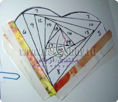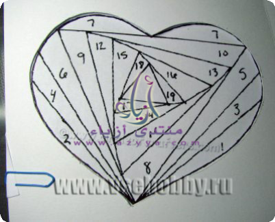 الطريقة سهلة جدا نأخذ ورق مقوى ونقصه على شكل قلب [IMG][/IMG] نخططه كما في الصورةاو بأي شكل تحبيه [IMG][/IMG] ناخذ ورق ملون ونلصقه كا في الصور [IMG] https://up.azyya.com/do.php?imgf=1369565841991.jpg https://up.azyya.com/do.php?imgf=1369565842032.jpg https://up.azyya.com/do.php?imgf=1369565842063.jpg [/IMG][IMG] https://up.azyya.com/do.php?imgf=136956590711.jpg https://up.azyya.com/do.php?imgf=1369565907142.jpg https://up.azyya.com/do.php?imgf=1369565907193.jpg https://up.azyya.com/do.php?imgf=1369565907224.jpg [/IMG]والنتيجة [IMG][/IMG] :e046: :e046: :e046: :e046: :e046: :e046: :e046: |