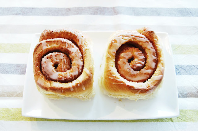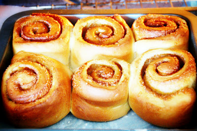 المقادير : • 4 أكوب دقيق • 2 ملعقة ونصف خميرة فورية " صغيرة " • نصف كوب سكر أبيض • ملعقة صغيرة ملح • 2بيضة • كوب حليب دافئ • ثلث كوب" خمس ملاعق كبيرة " زبدة • ملعقة صغيرة فانيليا الحشوة : • ثلاث أرباع الكوب سكر بني • ثلث كوب زبدة لينة • ثلاث ملاعق كبيرة قرفة للتزيين : • حليب مكثف محلى أو آيس كريم بنكهة الفانيليا الطريقة : 1. تخلط المقادير الجافة ثم تضاف عليها المقادير السائلة . 2. نعجن جيداً لمدة عشر دقائق ثم نغطي العجين ونتركه بمكان دافئ لمدة ساعة أو حتى يتضاعف حجمه . 3. نفرد العجين بعد أن نرش اللوح بالدقيق . 4. ندهن الزبدة ونرش السكر البني المخلوط بالقرفة ونضغط حتى يلتصق بالزبدة . 5. نلف المستطيل بدأ من الجهة المقابلة لنا على شكل اسطوانة مع إحكام اللف . 6. نقطع بواسطة سكين حادة دوائر . 7. نرص اللفائف بصينية مدهونة زبدة مع مراعاة ترك مسافة سنتمترين بين الدائرة والاخرى . 8. نغطي الصينية ونتركها تخمر نصف ساعة ونضعها في الفرن ، يمكن تقديمها مع كرات الآيس كريم بالفانيليا أو نصب على كل دائرة ملعقة كبيرة من الحليب المركز المحلى |