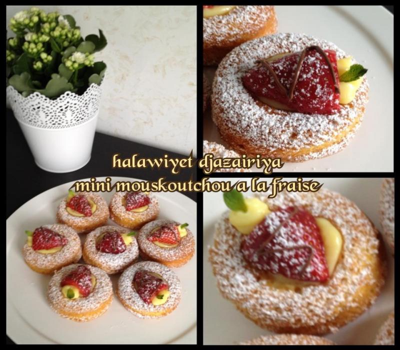 موسكو تشو بالكريمة و الفراولة حلويات جزائرية المقادير : - 3 بيض - كاس سكر ... - نصف كاس زيت - نصف كاس حليب - فانيلا - كيس خميرة حلوى - 180 غ الفرينة التزيين : كريمة: - 80 غ سكر - 60 غ فرينة - فانيلا - نصف لتر حليب - 2 بيض - شوكولاطة ذائبة او مربى حسب الذوق - سكر ناعم - فراولة كيفية التحضير : --- في ايناء اخفقي بواسطة الخلاط الكهربائي البيض و السكر و الفانيلا حتى يصبح لون الخليط ابيض ، أضيفي حسب الترتيب : الزيت ثم اخفقي قليلا ، ثم الحليب ، و أخيرا الفرينة و الخميرة . ---خدي المولات الصغار ادهنيهم بالزبدة و رشي بالفرينة . ثم افرغي الخليط في كل مول حوالى 3/2 . ثم اطهيه في فرن مسخن في درجة 160 د ،بعد الطهي اتركيه يبرد . ثم انزعيه من المول الكريمة كيفية التحضير : --- ضعي الحليب يغلي مع الفانيلا ( من المستحسن فانيلا عود ) --- في ايناء اخلطي البيض و السكر حتى يصبح لونه ابيض ثم أضيفي الفرينة بواسطة السيار ، ثم افرغي الخليط في الحليب الساخن اخلطي جيدا ثم ضعي فوق النار مرة ثانية ، و حركي حتى يعقد الخليط ، ضعيه في ايناء ثم غطيه بالغلافالغذائي ( حتى لا تكون هناك غشاء ) و زيني بالسكر الناعم ثم بالكريمة او بالشكولاطة الذائبة او المربى في الوسط و أخيرا ضعي الفراولة ، ثم ضعي فوقها خطوط بالشكولاطة ، و ورق صغير من النعناع |