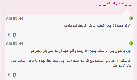 مسكينه احلام طلعتي الضحيه الثالثه ماشاء الله عليكي وعلى هدوء اعصابك ربي يخليلنا كل الطاقم الاداري بالمنتدى فعلا كلهن اخلاق عاليه وبيتحمل الكل بانتظار المقلب الرابع وربي يعين الضحيه القادمه |