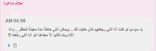 مو فاهمه شي بس والله تمتيل حلو سوسو الله يعين باقي البنات بس حلقه حلو والله استمتعت بيها تقبليني ♥ |