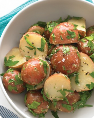 مع خمسة فقط المكونات - ديجون الخردل، الخل الأبيض والنبيذ وزيت الزيتون والبقدونس والبطاطا (زائد الملح والفلفل) - ربما يمكنك اثارة هذه السلطة سهلة مع ما في المطبخ الخاص بك. حفنة كبيرة من البقدونس الطازج المفروم يضيف نكهة اللون والطازجة إلى المزيج.
