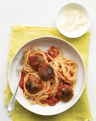 يمكن أن تثبت أن البساطة تكون جميلة، هذا الإصدار من المفضلة لعائلة يبدأ مع اللحم محلية الصنع تتألف من لذيذ الأرض تشاك لحوم البقر محنك مع البقدونس الطازج والثوم، والجبن البارميزان. واستحم السباغيتي واللحم في صلصة تتألف ببساطة من الطماطم المعلبة سحقت في هريس.