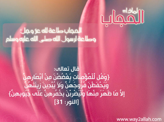 أنقلها لكِ أختي المسلمة في رسالة متواضعة .. لكي تكون دلالة على الخير و منارة .. لكل من تريد الإلتزام بالحجاب .. الذي ارتضاه لها رب العزة .. لا حجاب الموضة .. الذي شوّه المعنى الحقيقي لهذه الفريضة الربانية .. ^^^^^^^^^^^ خذي مني النصيحة والسلام ابنة الإسلام واستمعي الكلام .. خذي هذي النصيحة من غيور لدين الله لا يخشى الملام .. ^^^^^^^^^^^^^^^^^^^ https://up.azyya.com/do.php?imgf=1377547701221.jpg https://up.azyya.com/do.php?imgf=1377547701442.jpg ^^^^^^^^^^^^^ الحجاب فرض الله تعالى الحجاب على المرأة المسلمة تكريما لها ، و حفاظا على مكانتها السامية من أن تمس بسوء من الفساق و أشباه الرجال . كما أن الحجاب يمنع من وقوع الرجال في فتنتهن ، و يحفظهن من الأذى المترتب على ذلك . ففي الإسلام يجب على كل امرأة مسلمة أن تلبس الحجاب الشرعي أمام الرجال الأجانب ، و هم جميع الرجال باستثناء المحارم ، و هم : 1 الآباء 2 الأجداد 3 آباء الأزواج 4 أبناء الأزواج 5 أبنائهن 6 الأخوة 7 أبناء الأخوة 8 أبناء الأخوات 9 الأعمام 10 الأخوال 11 المحارم من الرضاع ^^^^^^^^^^^^^^ كما ورد فى الاية الكريمة { وَقُل لِّلْمُؤْمِنَاتِ يَغْضُضْنَ مِنْ أَبْصَارِهِنَّ وَيَحْفَظْنَ فُرُوجَهُنَّ وَلَا يُبْدِينَ زِينَتَهُنَّ إِلَّا مَا ظَهَرَ مِنْهَا وَلْيَضْرِبْنَ بِخُمُرِهِنَّ عَلَى جُيُوبِهِنَّ وَلَا يُبْدِينَ زِينَتَهُنَّ إِلَّا لِبُعُولَتِهِنَّ أَوْ آبَائِهِنَّ أَوْ آبَاء بُعُولَتِهِنَّ أَوْ أَبْنَائِهِنَّ أَوْ أَبْنَاء بُعُولَتِهِنَّ أَوْ إِخْوَانِهِنَّ أَوْ بَنِي إِخْوَانِهِنَّ أَوْ بَنِي أَخَوَاتِهِنَّ أَوْ نِسَائِهِنَّ أَوْ مَا مَلَكَتْ أَيْمَانُهُنَّ أَوِ التَّابِعِينَ غَيْرِ أُوْلِي الْإِرْبَةِ مِنَ الرِّجَالِ أَوِ الطِّفْلِ الَّذِينَ لَمْ يَظْهَرُوا عَلَى عَوْرَاتِ النِّسَاء وَلَا يَضْرِبْنَ بِأَرْجُلِهِنَّ لِيُعْلَمَ مَا يُخْفِينَ مِن زِينَتِهِنَّ وَتُوبُوا إِلَى اللَّهِ جَمِيعاً أَيُّهَا الْمُؤْمِنُونَ لَعَلَّكُمْ تُفْلِحُونَ } النور31 ^^^^^^^^^^^^^ و تحرم مخالفة شرط من شروط الحجاب الشرعي الثمانية أينما وجد الرجال الأجانب .. فبعض النساء يرتدين حجابا شرعيا خارج بيوتهن ، و لكنهن يخالفن بعض هذه الشروط أمام بعض أقاربهن كأبناء أعمامهن ، أو أبناء أخوالهن فيغطين رؤوسهن ، و لكنهن يلبسن لباسا محددا للجسم كالبلوزة مثلا ، فيقعن بذلك في الحرام والاثم .. ^^^^^^^^^^^^^^ https://up.azyya.com/do.php?imgf=1377547892181.gif https://up.azyya.com/do.php?imgf=1377547892232.jpg https://up.azyya.com/do.php?imgf=1377548108181.jpg https://up.azyya.com/do.php?imgf=137754810822.jpg https://up.azyya.com/do.php?imgf=1377548108243.jpg https://up.azyya.com/do.php?imgf=1377548108264.jpg https://up.azyya.com/do.php?imgf=1377548108465.jpg https://up.azyya.com/do.php?imgf=1377548108476.jpg https://up.azyya.com/do.php?imgf=137754810857.jpg https://up.azyya.com/do.php?imgf=1377548108538.jpg منقوووووول مع اضافه |