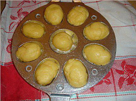 المقادير: 250غ فارينة (دقيق) 125غ زبدة 2 بيضتين ( في درجة حرارة الغرفة) 2 ملاعق أكل سكر ناعم 5غ أي ما يعادل 1 ملعقة قهوة خميرة حلويات الحشوة علبة حليب مركز الطريقة في البداية توضع علبة الحليب المركز في طنجرة ضغط و يتم و ضع بعض الماء ثم غلقها و توضع على النار في الأثناء تتم غربلة الدقيق في إناء ثم تضيفين السكر +الخميرة+ الملح ( أي المواد الجافة ) يتم خلط المواد الجافة جيدا تقطع الزبدة في شكل مكعبات ( يجب أن تكون في درجة حرارة الغرفة) ثم البيض يتم خلط المقادير حتى الحصول على عجينة طرية يتم تشكيل كريات صغيرة و وضعها على القالب و تشكيلها على البقع المحفورة يغلق القالب و يوضع على نار متوسطة ثم يتم تقليبه على الجهتين حتى تصبح العجينة ذات لون ذهبي عندها يتم أخراجها و وضعها في طبق بعد إنهاء عمل الحبات تكون علبة الحليب المركز قد نضجت أخرجها و عبئ الجوزات بالحليب المركز ( الذي سيصبح لونه في لون و طعم الكارامال) و ألصق كل نصفين إلى بعض ملاحظة: تستطيع وضع حبة بندق في وسطها أو أي نوع من الفواكه الجافة http://up.azyya.com/do.php?imgf=1379071141341.jpg http://up.azyya.com/do.php?imgf=1379071141662.jpg http://up.azyya.com/do.php?imgf=1379071141883.jpg http://up.azyya.com/do.php?imgf=1379071142074.jpg http://up.azyya.com/do.php?imgf=1379071142255.jpg http://up.azyya.com/do.php?imgf=1379071142526.jpg http://up.azyya.com/do.php?imgf=137907125431.jpg http://up.azyya.com/do.php?imgf=1379071254733.jpg http://up.azyya.com/do.php?imgf=1379071254814.jpg http://up.azyya.com/do.php?imgf=1379071254965.jpg |