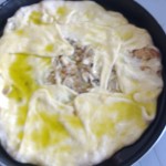 حبيت اشارككم اليوم بالمطابق الي عملته انا وماما وكتير سهل وما بياخد وقت..وزاكي عالاخر المقادير: اربع كور عجين جاجاتين من 15 الى20 حبة بصل حجم متوسط فلفل ملح وزيت زيتون بالبداية اسلقي الجاج قشري البصل[IMG]http://up.azyya.com/do.php?thmbf=1384087677811.jpg[/IMG] افرميه مربعات [IMG]http://up.azyya.com/do.php?thmbf=1384087680414.jpg[/IMG] بعد ماتقطعي العجينة كور خليه يرتاح شوي [IMG]http://up.azyya.com/do.php?thmbf=1384087678712.jpg[/IMG] حطي البصل عالنار وصبي زيت زيتون وكتري وقلبيه حتى يتحمر ويقلب لونه دهبي [IMG]http://up.azyya.com/do.php?thmbf=1384087681235.jpg[/IMG] سحبي الجاج من العظم بعد مايستوي وقطعيه قطع سهل تناكل صغيرة او وسط وحطيهم فوق البصل وبهريهم بالملح والفلفل وزيدي الزيت شوي وظلي حركي عشان ما ينحرق قاع الطنجرة افردي العجينة بايدك او بالشوبك ماما بتفردو بايدها ما بنحب الشوبك:e035: [IMG]http://up.azyya.com/do.php?thmbf=1384088339614.jpg[/IMG] جيبي صينية تيفال ادهنيها بزيت وافردي العجينة بالصينية وبالمعلقة المشبكة طلعي من البصل والجاج وحطي فوق العجين وافرديهم وجيبي طبقة عجين تانية افرديها وارجعي حطي جاج وبصل وطبقي العجين لجوه هيك صارو طيقتين بتقدري تعملي طبقات اكتر [IMG]http://up.azyya.com/do.php?thmbf=1384088338773.jpg[/IMG] ادهني وجه العجين بزيت عشان يتحمر وحمي الفرن 10د بدها تلت ساعة بالكتير وبتجهز [IMG]http://up.azyya.com/do.php?thmbf=1384088337852.jpg[/IMG] بابا بحب البيبسي معها وماما بتحب الشاي وانا بحب السلطة وانتو حرين كله زاكي وصحتين وعافية |