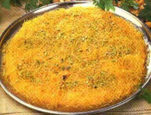 المقادير: ربع كيلو من الكنافة الشعر قليل من الزيت القشطة 6 شرائح توست ابيض 2 كوب ماء كوب لبن بودرة خالى الدسم 2 ملعقة كبيرة سكر 2 ملعقة كبيرة نشا ملعقة كبيرة ماء زهر مقدار من الشراب بسكر الدايت فستق مجروش للزينة الطريقة: 1 .رصى الكنافة دائريا فى صينيتين متساويتين فى الحجم ويرشوا بقليل من الزيت ويدخلوا فرن هادىء لمده ربع ساعه ثم نولع الشواية حتى يتحمر الوجه 2 .إعملى القشطة بازالة حواف التوست وتقطيعه ثم خلطه مع الماء واللبن البودرة والنشا والسكر وماء الزهر وتركه 10 دقائق حتى يذوب التوست 3 .إضربى الخليط فى الخلاط ثم يرفع على النار حتى يغلى فيترك حتى يبرد 4 .ضعى قرص الكنافة فى طبق التقديم ثم نرشه بالشربات ونضع عليه القشطة 5 . ضعى القرص الثانى من الكنافة ونرشه بالشربات ثم يرش بالفستق المجروش http://up.azyya.com/do.php?imgf=1384163645121.jpg |