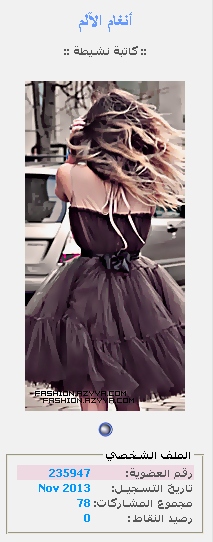 http://fashion.azyya.com/447173.htmlرابط المسابقة اهلا وسهلا بيكم في الأسبوع الثاني من مسابقة جربي حظك :e064: الف مبروك للفائزين بالاسبوع الاول مرة ثانية وبأكد انه الفائزين ممنوع يشاركوا مرة تانية وبتمنى يآرب يستمر الحماس مثل بالاسبوع الاول وأكثر وبشكر كل الي اشتركوا بالمسابقة http://i1130.photobucket.com/albums/...f?t=1318849487 ضيفتنــآ لهذآ الاسبوع الآمورة http://up.azyya.com/do.php?imgf=1386014464821.bmp أهلاً وسهلاً بكٍ حبيبتي وشكـراً لقبولك الدعـوى http://i1130.photobucket.com/albums/...f?t=1318849487 طرحنا سؤالنا على ضيفتنا الحلوة ما هو لون شعرك ؟؟ فأجابت .... ؟؟ 1_ أسْــود 2_ بُــني 3_ أشْقــَـر http://i1130.photobucket.com/albums/...f?t=1318849487 حزرو فزرو ماهي الاجابة الصحيحة !!؟ بالتوفيق ان شاء الله للجميع |
