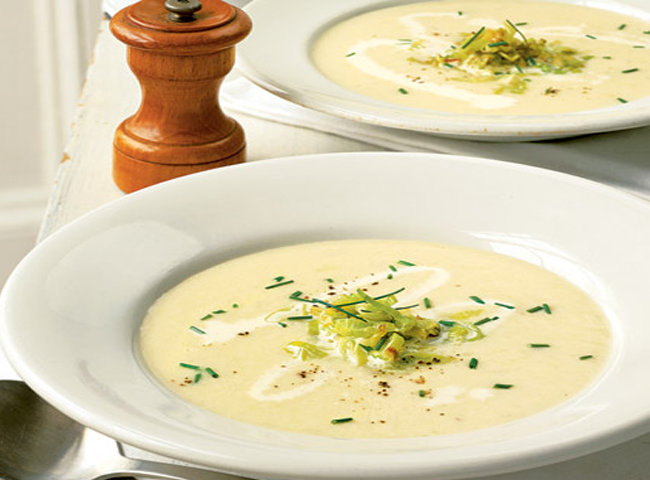 المقادير : • 1 كيلو من الكراث . • 2 بصلة متوسكطة الحجم . • 2 حبة بطاطا كبيرة الحجم . • 2 ملعقة كبيرة زبدة . • 2 ملعقة كبيرة زيت نباتى . • ملح وفلفل اسود . • 6 أكواب من مرق الدجاج أو اللحم . طريقة التحضير : 1. توضع االزبدة مع الزيت فى قدر فوق النار بعد ان يسخن المزيج جيدا يضاف اليه البصل المفروم ويقلى حتى يصبح شفافا وأصفر اللون . 2. تضاف اليه مكعبات البطاطا االمقشرة ويتابع القلى لمدة 8 دقائق . 3. يضاف الكراث المنظف والمقطع طوليا الى شرائح رفيعة ويقلى الكل لمدة 5 – 10 دقائق اضافية مع التحريك بأستمرار حتى لا يلتصق الخضار فى قعر القدر . 4. يضاف مرق الدجاج أو اللحم ثم الملح والفلفل الابيض حسب الذوق . 5. يطهى الكل فوق نار قوية حتى يبدأ المزيج بالغليان , تخفف النار حتى تصبح متوسطة ويطهى الحساء حتى تنضج الخضار تماما . 6. يقدم الحساء ساخنا مع الخبز المحمص . |