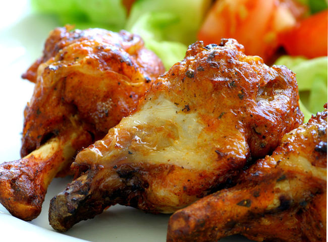 المقادير : • دجاجة متوسطة حوالى 1 ونصف كيلو . • 4 فصوص ثوم . • 1 حبة طماطم . • كوب زبادى . • زعتر , روز مارى . • ملح وفلفل . • ¼ كوب زيت نباتى . طريقة التحضير : 1. تنظف الدجاجة وتفتح من الظهر بجوار السلسلة وتفرد ثم تدق قليلا من الداخل وتغسل جيدا وتغرس بسكين حاد فى عدة أماكن مختلفة حتى تتشرب من التتبيلة . 2. يفرم الثوم ويضاف اليه الزيت والليمون والزبادى والملح والفلفل والزعتر والروز مارى وتقشر ثمرة الطماطم وتضرب فى الخلاط وتضاف الى الخلطة السابقة وتتبل بها الدجاجة وتترك حوالى ساعة . 3. تشوى الدجاجة على الفحم أو على الشواية السلك ويراعى رشها من وقت لآخر من التتبيلة السابقة حتى تظل طرية وتقدم على طبق به بقدونس ويقدم معها أصابع البطاطس المحمرة أو الخضار السوتية . |