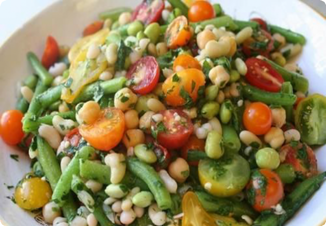 المقادير : • ½ كيلو طماطم طازجة . • ½ كيلو بطاطا . • ½ كيلو لوبيا . • 10 حبات زيتون اسود . • 1 علبة كبيرة تونة بالزيت . • 4 بيضات . • 1 علبة صغيرة من التين الشوكى . • ¼ كيلو لوبيا بيضاء . مقادير الصلصة : • ½ كوب عصير الليمون . • ¾ كوب زيت زيتون . • ½ ملعقة صغيرة خردل . • رشة ملح . طريقة التحضير : 1. ترص الطماطم المقطعة وقطع البطاطا المسلوقة واللوبياء الخضراء المسلوقة والمقطعة واللوبياء البيضاء والتين الشوكى فى طبق التقديم . 2. يسكب سمك التونة ( بعد تصفيتة من الزيت ) فى الوسط ويزين بالزيتون الاسود والبيض المسلوق المقشر والمقطع الى شرائح . 3. تخلط مكونات الصلصة متسكب فوق الخضار . 4. تقدم السلطة بمثابة نوع من المقبلات . |