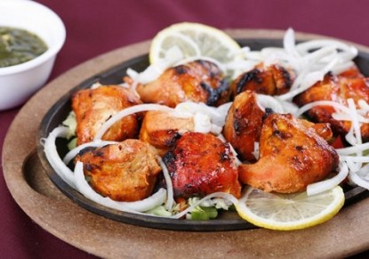 المقادير ملح ,1.50 ملعقة صغيرة كركم , ملعقة صغيرة معجون الزنجبيل والثوم , ملعقة كبيرة مسحوق الفلفل الأحمر الحار ,2 ملعقة صغيرة ماء دافئ ,2 ملعقة كبيرة زعفران ,0.50 ملعقة صغيرة دجاجة مقطَّعة, حبة لبن زبادي ,0.50 كأس طريقة التحضير - أُخلطي الزعفران، ومسحوق الفلفل الأحمر الحار، والكركم، ومعجون الثوم والزنجبيل، والملح، ولبن الزبادي، والماء الدافئ معاً وإدهني به قطع الدجاج مع عمل ثقوب فيها، وأُتركيها بهذا النقيع لمدة 3 ساعات داخل الثلاجة. - إشوي الدجاج على الفحم حتى ينضج ويتحمَّر. - ضعي الدجاج الهندي الحار في طبقٍ مُنبسط، وزينيهِ بشرائح البصل والطماطم والخيار "حسب الرغبه"، وقدِّميهِ ساخناً إلى جانب الخبز اللذيذ، والسلطات الهندية الحارَّة. |