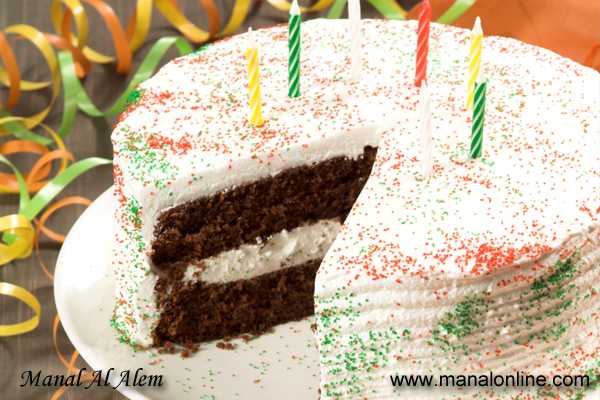 :e020::e050: الكيك 3/2 كوب ماء ساخن جدا 4/3 كوب بودرة الكاكاو السادة 2 كوب دقيق 2/1 ملعقة صغيرة ملح 1 ملعقة صغيرة بيكربونات الصودا 4/3 كوب زبدة، لينة 3/2 كوب سكر ناعم الحبيبات 3/1 1 كوب سكر بنى فاتح 3 حبة كبيرة بيض 1 ملعقة صغيرة فانيليا ، سائلة 1 كوب كريمة حامضة الكريمة المخفوقة 3 عبوة 250 مل كويك ويب 6 ملعقة كبيرة سكر ناعم بودرة 2/1 ملعقة صغيرة فانيليا، سائلة 3-2 ملعقة كبيرة سكر ملون 1)شغلي الفرن على درجة حرارة 180 م ( 350 ف) غاز رقم (4) ، ثبتي الرف الشبكي الأوسط في الفرن. ابدئي بتجهيز القوالب. 2)احضري 2 قالب مستدير مقاس 9 بوصة ، ادهني قاع وجوانب القالب بالسمن النباتي او الزبدة، بطني قاع القالب بورقة زبدة مستديرة مقاسها 9 بوصة. انثري الدقيق على جوانب القالب، تخلصي من الدقيق الفائض ، ضعي القالب جانبا 3)في وعاء عميق او مكيال كوب زجاجي كبير ضعي الماء، ثم أضيفي بودرة الكاكاو، قلبي الى ان يذوب الكاكاو ويصبح مثل العجينة اللينة. اتركيه جانبا الى ان يبرد تماما. 4)على قطعة من الورق او في طبق عميق،، انخلي الدقيق، الملح، بيكربونات الصودا ، اتركيه جانبا. 5)في وعاء الخلاط ضعي الزبدة، السكر و السكر البني، ثبتي المضرب الشبكي واخفقي على سرعة بطيئة الى ان تختلط المكونات ثم اخفقي على سرعة متوسطة بضع دقائق الى ان يصبح الخليط هشا مثل الكريمة ، ستجدين ان الخليط اصبح لونه بيج فاتح. 6)استعملي ملعقة بلاستيكية عريضة لمسح جوانب الوعاء، لكي تتأكدي من امتزاج المكونات جيدا . 7)أضيفي بيضة، اخفقي الى ان تختفي وكرري ذلك مع بقية البيض، أضيفي الفانيليا. 8)أضيفي خليط الكاكاو، قلبي الى ان يختفي. 9)أضيفي نصف مقدار خليط الدقيق، أضيفي نصف مقدار الكريمة الحامضة، اخفقي الى ان يختفي الدقيق، ثم أضيفي بقية الكريمة والدقيق، اخفقي على سرعة بطيئة الى ان يختفي الدقيق ثم على سرعة متوسطة لمدة دقيقة واحدة. 10)وزعي خليط الكيك بين القالبين بالتساوي. 11)ادخلي القالب الى الفرن واخبزي 30 – 35 دقيقة الى ان ينضج الكيك ويصبح اسفنجي الملمس على سطحه. اختبري نضج الكيك بالعود الخشبي. 12)اخرجي القوالب من الفرن، اتركي القوالب على شبك لبضع دقائق. اخرجي الكيك من القالب، اتركيه على الشبك الى ان يبرد تماما. 13)تجهيز التورتة : تخلصي من ورق الزبدة الملتصق في قاع الكيك. 14)ضعي طبقة من الكيك على طبق التقديم، بحيث يكون سطح الكيك الى اعلى. 15)وزعي نصف مقدار الكريمة فوق الكيك. 16)ضعي الطبقة الثانية بحيث يكون القاع الى اعلى، وزعي بقية الكريمة على سطح و جوانب الكيك . 17)باستعمال سكين عريضة وزعي الكريمة بشكل ناعم ومتناسق. 18)ضعي التورتة بالثلاجة لعدة ساعات الى ان تتماسك. انثري عليها السكر الملون. •الكريمة المخفوقة: 1)ضعي عبوة الكريمة في الثلاجة لمدة ساعة او الى ان تصبح باردة . 2)ضعي الكريمة في وعاء الخلاط ، استعملي مضرب شبكي لخفق الكريمة على سرعة متوسطة الى ان تبدأ بالتماسك، انخلي السكر الناعم واضيفيه الى الكريمة ،اضيفي الفانيليا، استمري بالخفق بهدوء الى ان تتماسك الكريمة وتصبح هشة ، لا تخفقي اكثر من اللزوم فبمجرد تماسك الكريمة توقفي عن الخفق. استعمليها مباشرة. |