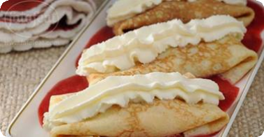 2 كوب لبن حليب 1 حبة بيض ½ 1 كوب دقيق (طحين) رشة ملح 100 غرام زبدة مذابة مكونات الصوص: عصير 2 حبة برتقال بشر 1 حبة برتقال 175 غرام زبدة 75 غرام سكر عصير نصف حبة ليمون حامض طريقة التحضير طريقة تحضير الكريب: - ينخل الدقيق والملح في طبق عميق - تصنع حفرة في المنتصف ويوضع بها البيض ويضرب بالمضرب حتى يمتزج الخليط - يضاف اللبن الحليب تدريجياً حتى يتجانس الخليط - تضاف الزبدة الذابة ويترك العجين في الثلاجة (البراد) لمدة ساعة طريقة تحضير الصوص: - يوضع عصير البرتقال وعصير الليمون الحامض وبشر البرتقال والسكر في قدر على النار حتى يغلي - تضاف الزبدة تدريجياً ثم يضرب بالمضرب السلك حتى يغلظ الصوص قليلاً - تسخن طاسة الكريب ويصنع وحدات كريب - يطبق كل كريب إلى نصفين ثم إلى ربعين حتى يصبح كالمثلث ثم يغطس في الصوص http://up.azyya.com/do.php?imgf=1387828972981.jpg |