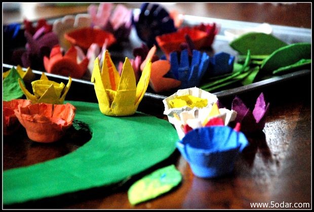 حولي كرتونة البيض بعد نفاذ البيض منها وتنظيفها إلى اكليل من الزهور وتمتعي ومتعي عائلتك بشيء من الابتكار: