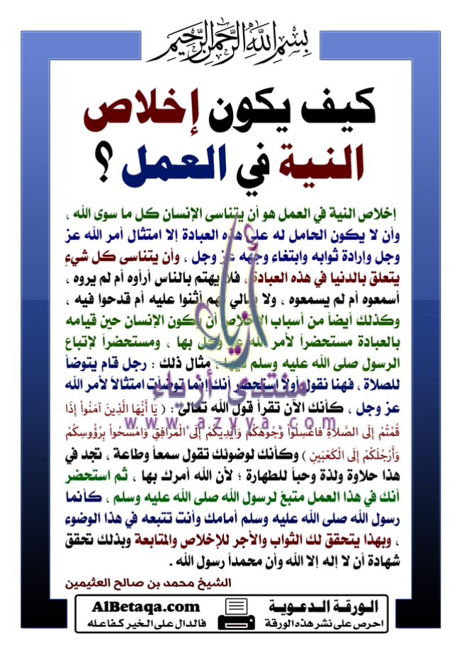 كيف يكون إخلاص النية في العمل ؟
