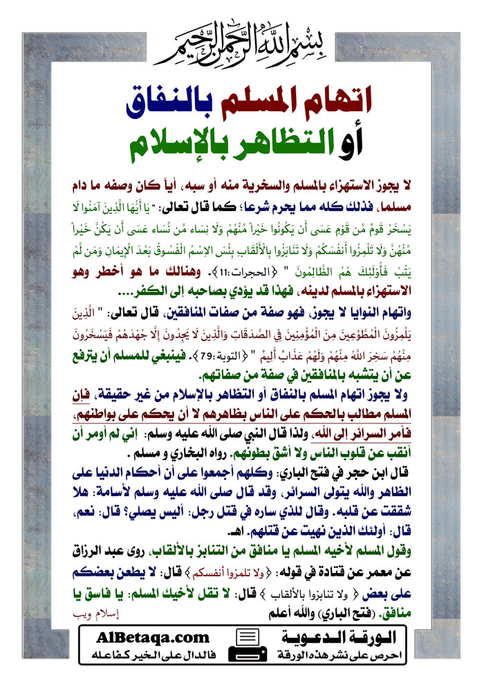 اتهام المسلم بالنفاق أو التظاهر بالإسلام