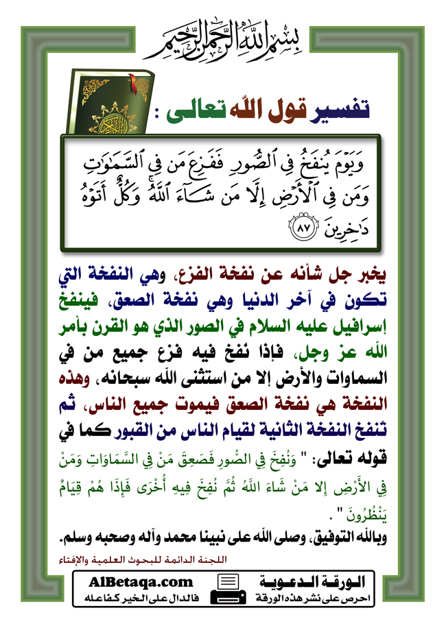 تفسير قول الله تعالى ويوم ينفخ في الصور