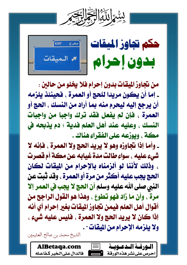 حكم تجاوز الميقات بدون إحرام