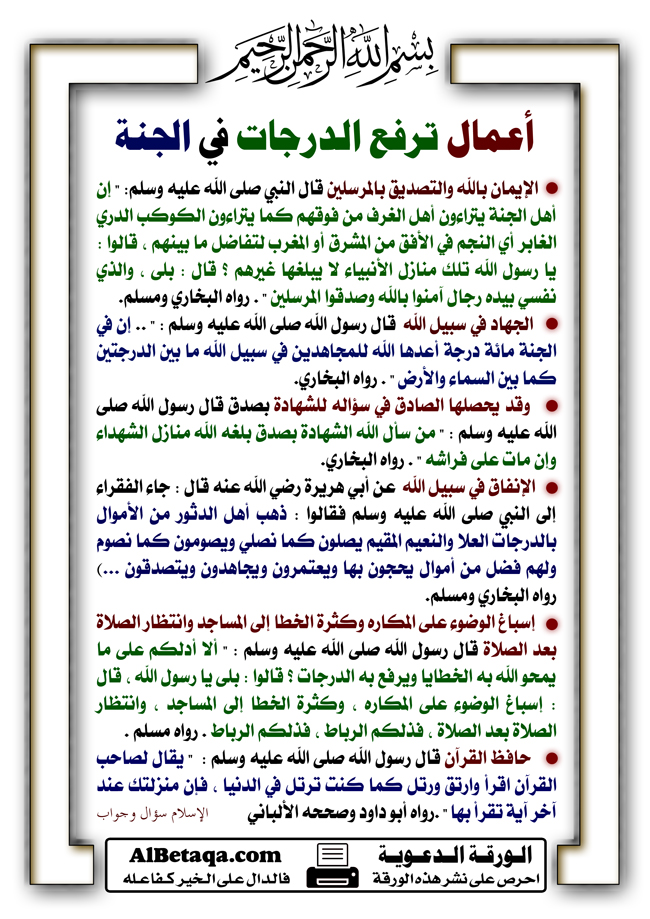 رد: أعمال ترفع الدرجات في الجنة
