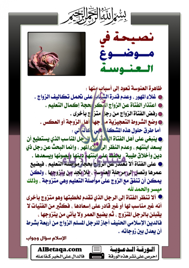 نصيحة في موضوع العنوسة