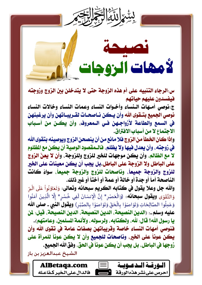نصيحة لأمهات الزوجات