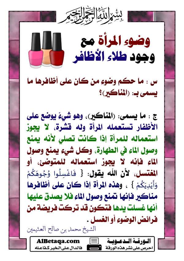 وضوء المرأة مع وجود طلاء الأظافر