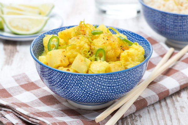 حبة قرنبيط كبيرة 2 حبة بطاطس متوسطة 3 ملاعق كبيرة زيت نباتي 2 ملعقة صغيرة بذور شمر ملعقة كبيرة بذور خردل 4 فصوص ثوم ¼ ملعقة صغيرة من الكركم المطحون ¼ملعقة صغيرة بودرة كاري ¼ ملعقة صغيرة بودرة فلفل حار ملعقة كبيرة صلصة طماطم ربع كوب ماء طريقة التحضير قطعي القرنبيط الى زهرات صغيرة وقطعي البطاطس الى مكعبات صغيرة. اسلقي البطاطس لمدة 10 دقائق ثم صفيها من الماء وضعيها جانباً. ضعي الزيت في مقلاة ثم اضيفي بذور الشمر والخردل وقلبي لدقيقة ثم اضيفي الثوم، وصلصة الطماطم والكاري والكركم، والفلفل الحار وقلبي جيداً. اضيفي القرنبيط والبطاطس مع الماء والقليل من الملح ثم غطي الوعاء واتركيه على نار هادئة لمدة 10 دقائق وحتى يجف الماء. يقدم القرنبيط مع الخبز. |