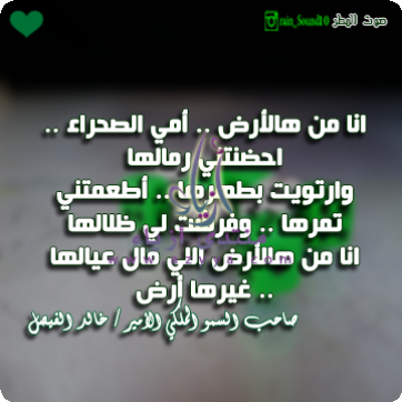 للمملكة العربية السعودية هذا يوم يرفع فيه كل مواطن رأسه شموخاً وفخراً بما تحقق على أرض وطنه المعطاء، وندعو الله العلي القدير أن يحفظ لنا ولاة أمرنا وأن يمتعهم بالصحة والعافية وأن يجزيهم خيرالجزاء لما يبذلونه لراحة أبناء هذا الشعب الوفي. يا وطنا دام عزك شامخ والدين سيرة ما رضينا غير أرضك نسكن ونعشق ثراها .. وطني .. هذا الذي يفخر بمن أمسى تحته واحتضنته تربته .. ففي بطن هذه الأرض خير البشر أجمعين .. وحبيب خالق السماوات والأرضين .. وخاتم الأنبياء والمرسلين .. صلى عليه الله في العالمين .. وصحابته الغـرّ الميامين الذين جاهدوا لنصرة هذا الدين .. فرضي الله عنهم وأرضاهم أجمعين .. هذا الوطن الذي يفخر بمن أضحى فوقه ومشى على تربته .. فعلى ربوعه ولاة حكموا بما أنزل الله وأقاموا الصلاة وآتوا الزكاة .. وكانوا للحرمين خدماً ولضيوف الرحمن ندماً .. ولاة حملوا على أكتافهم هموم الوطن والمواطن .. جعلوا أمنه ورفاهيته شغلهم الشاغل .. ولاة أحبوا المواطن فأحبهم المواطن .. ولاة فتحوا أبوابهم وجعلوها مشرعة لكل قاصد .. ولاة جعلوا الأولوية لمن له حاجة .. وسعوا لإرضاء من ليست له حاجة .. وعلى هذا الوطن أناس ملأت الطيبة قلوبهم .. وملأ الوفاق اجتماعهم .. وغطى الأنس حياتهم .. أناس يعرفون حق الله عليهم فأقاموا أركان الدين .. أناس يعرفون حق الولاة عليهم فأطاعوهم في يقين .. أناس يعرفون حق الوطن عليهم فعمروه بالحب والعلم المبني على الحق المبين .. إني لأفخر .. وكيف لا أفخر فهذه أرضي ووطني .. https://cdn.sabq.org/uploads/media-c...age/383418.jpg https://up.azyya.com/do.php?imgf=150608263621.png https://up.azyya.com/do.php?imgf=1506082636282.png https://up.azyya.com/do.php?imgf=1506082636353.png |